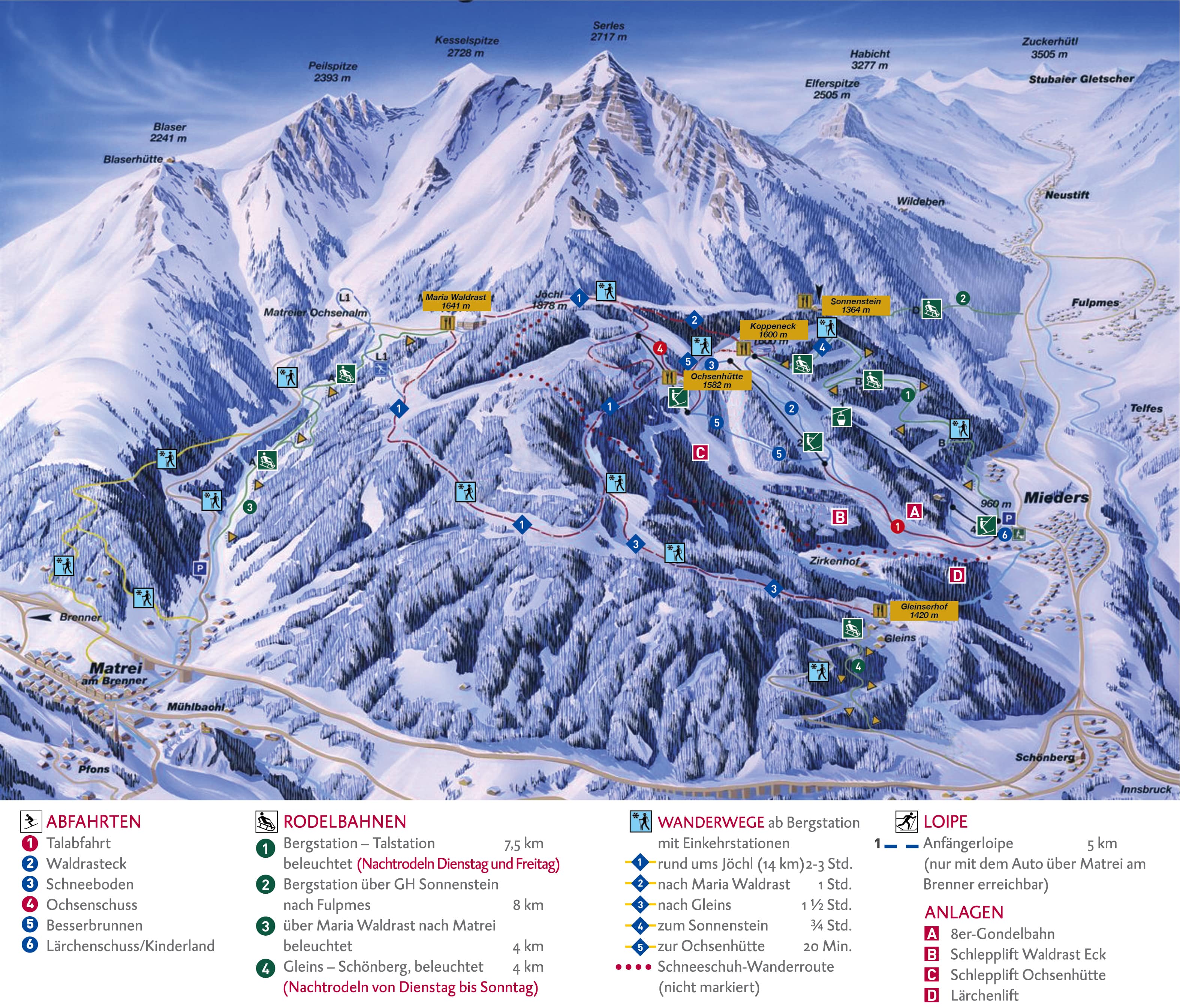 Free, downloadable Serles Ski Trail Maps.