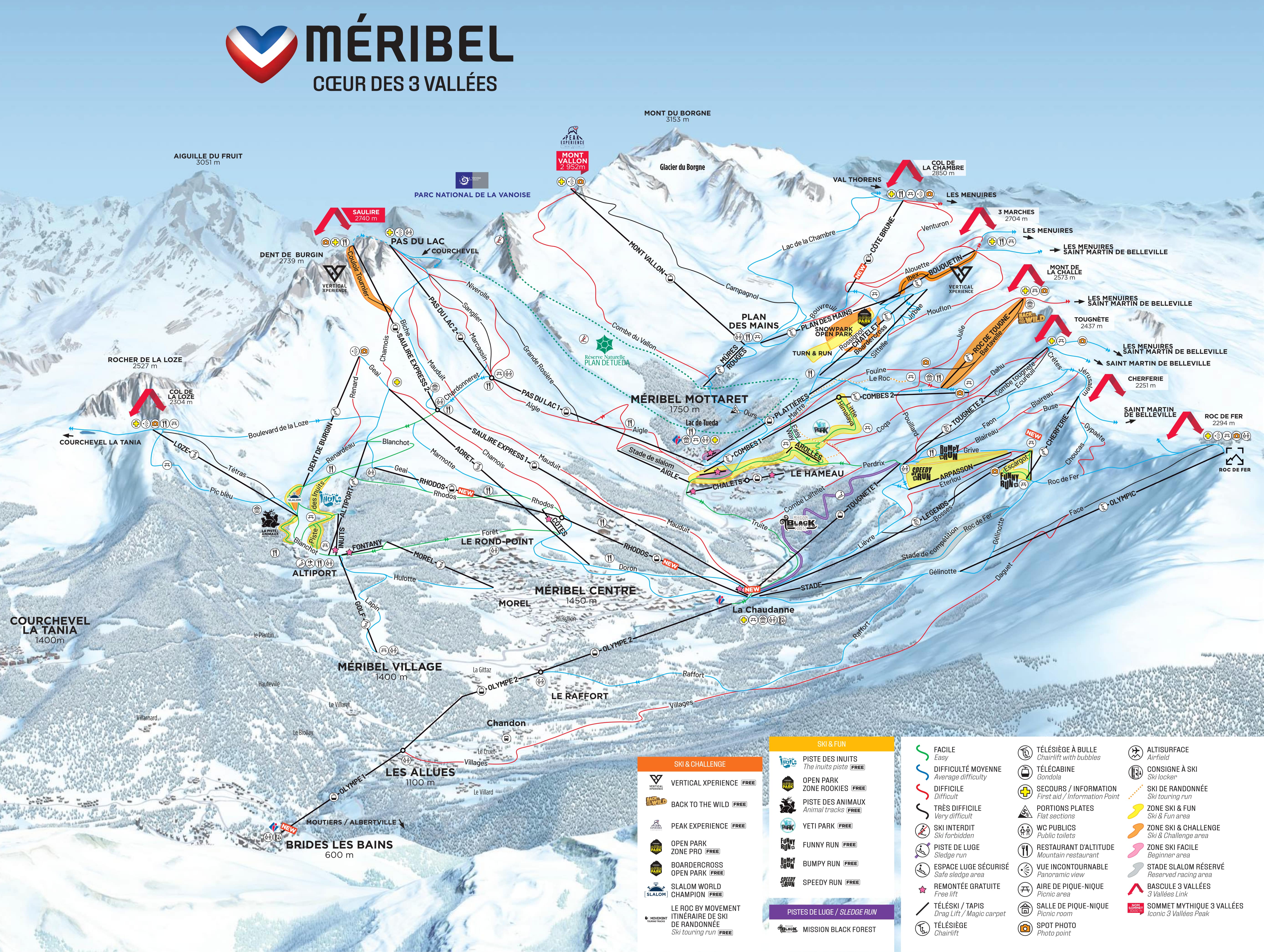 Meribel, part of the massive 3 Valleys Ski Domain. Download the latest Meribel Ski Trail Map.