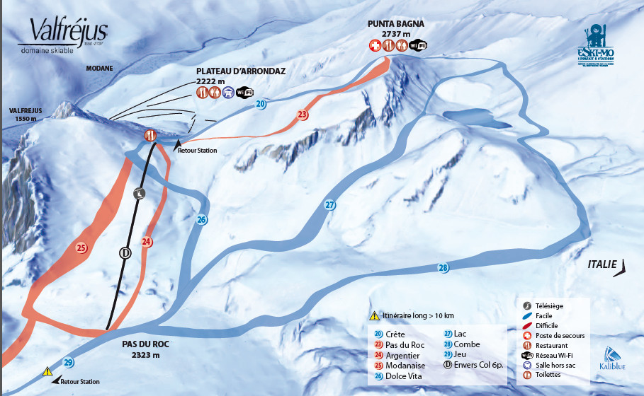 Valfrejus Varsant Italien Ski Trail Map