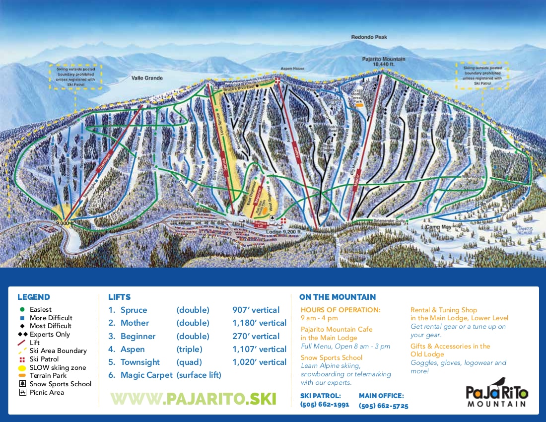 Download the latest Pajarito Ski Resort Ski Trail Map.