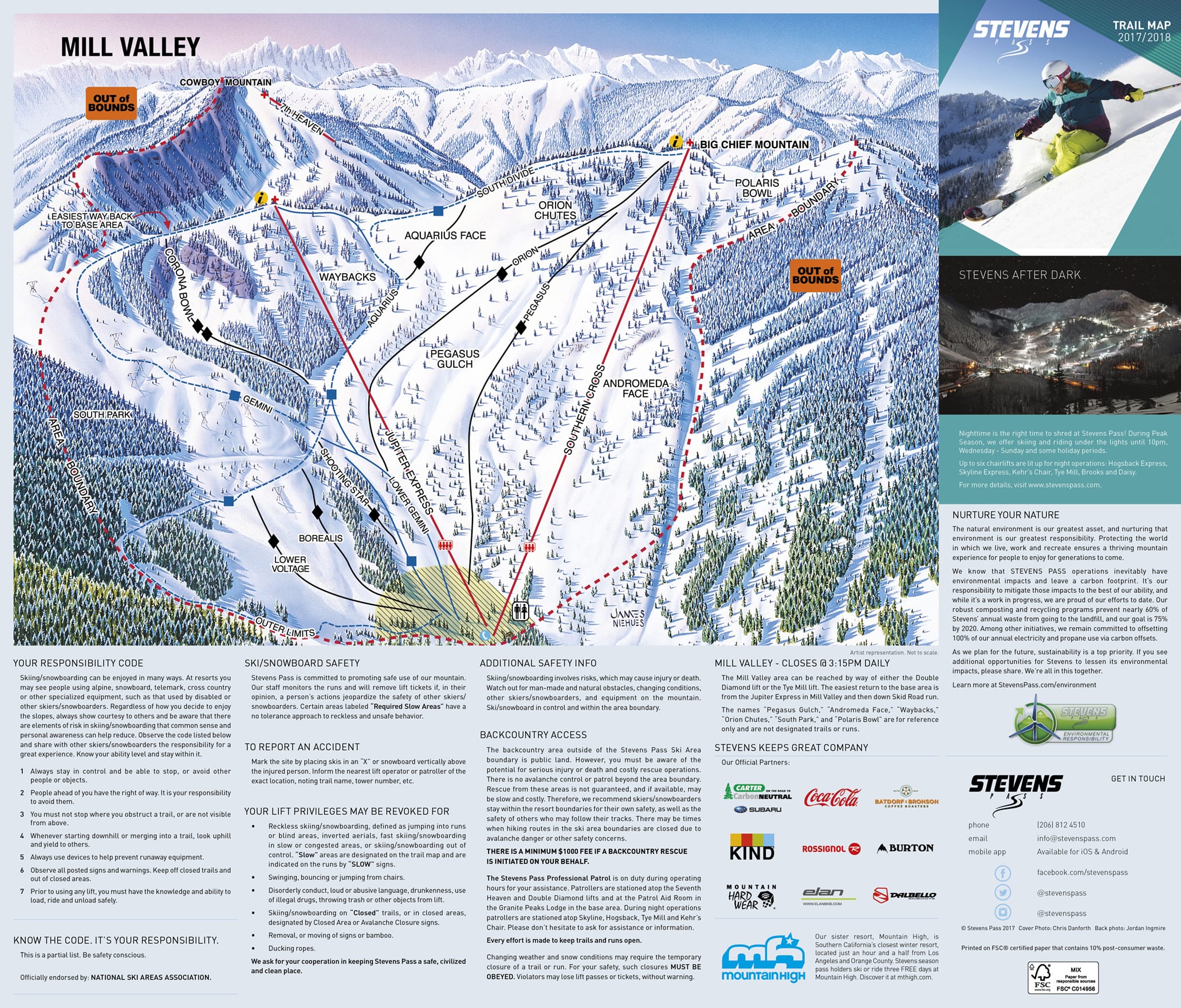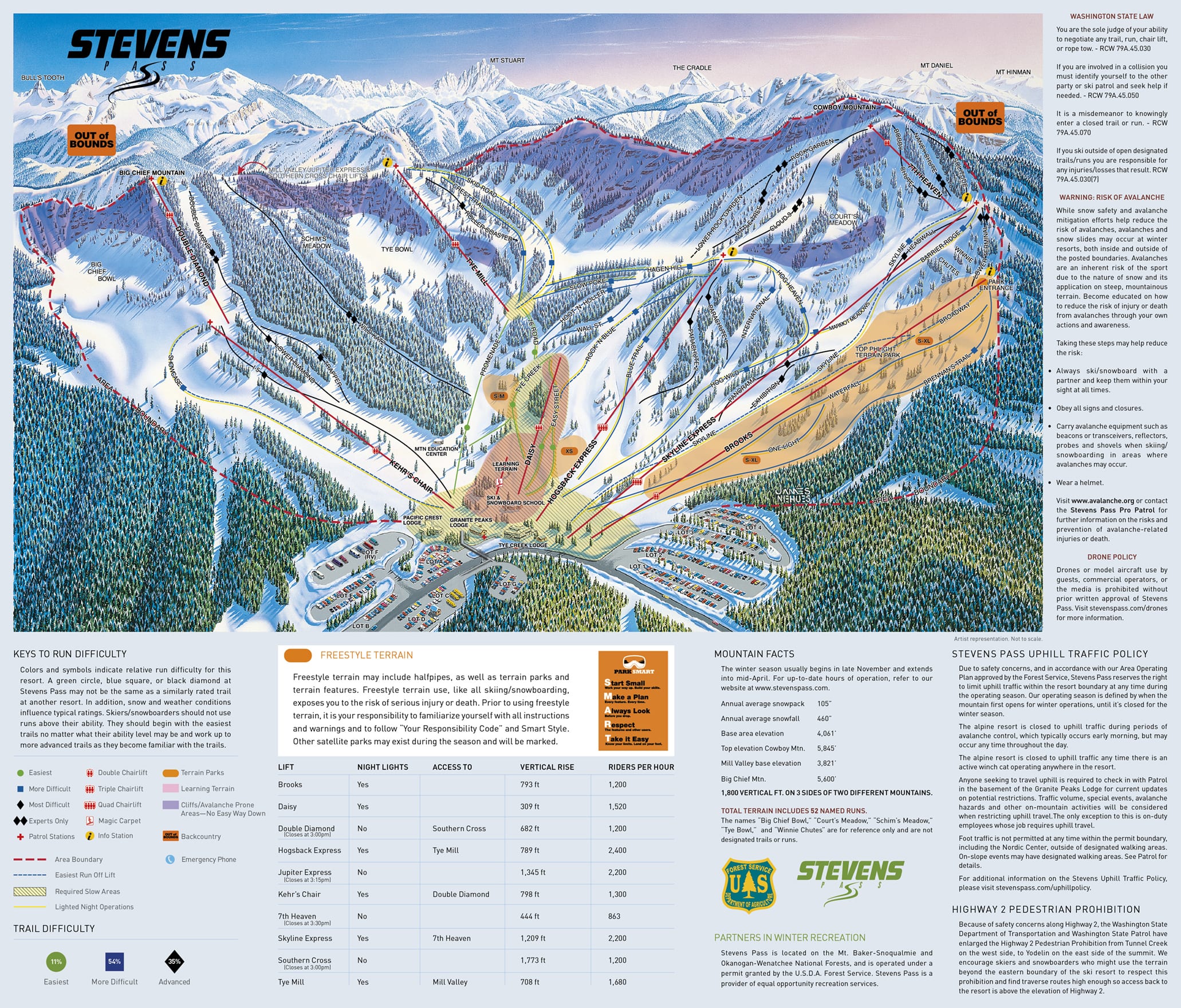 Download the latest Stevens Pass Mill Valley Ski Trail Map.